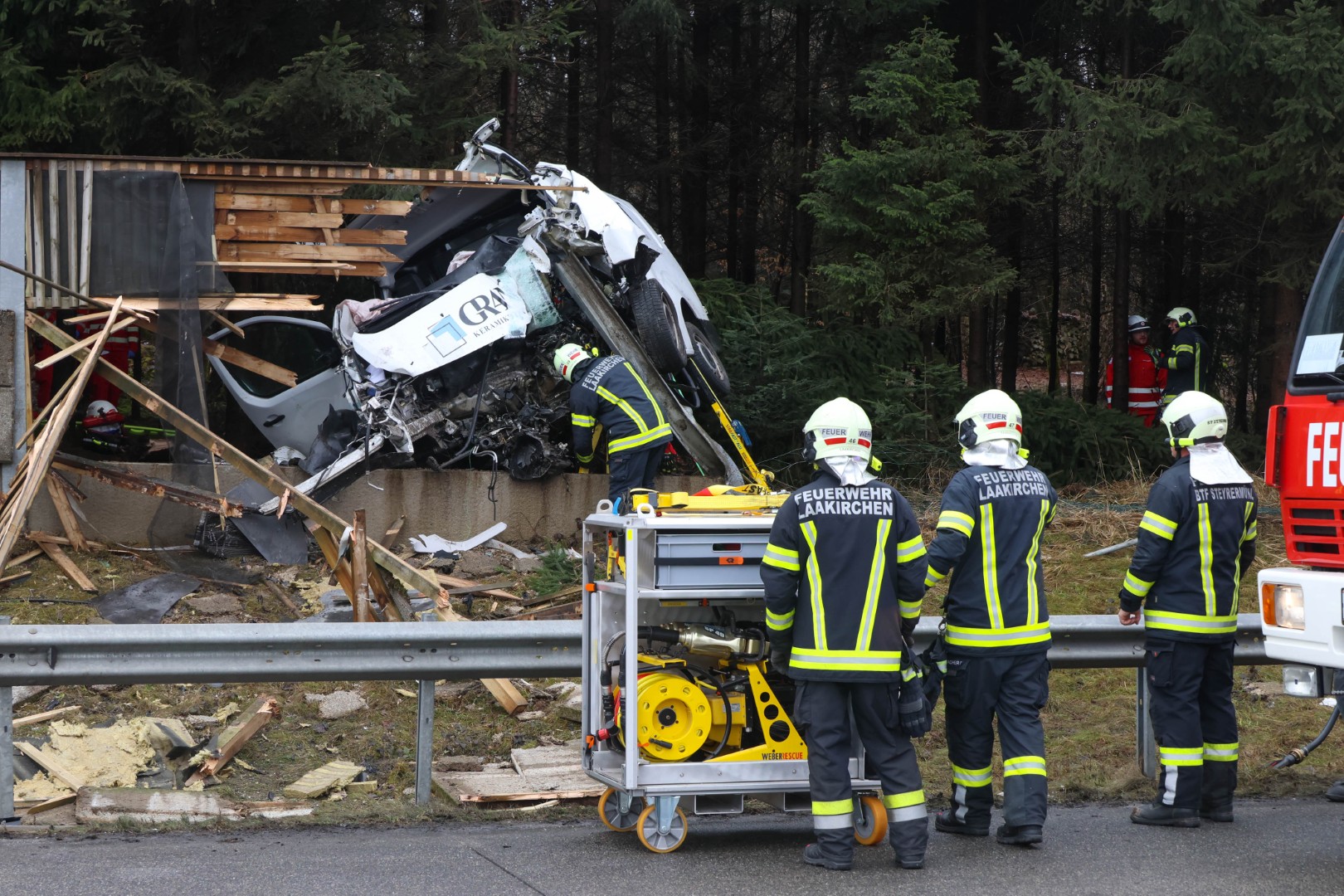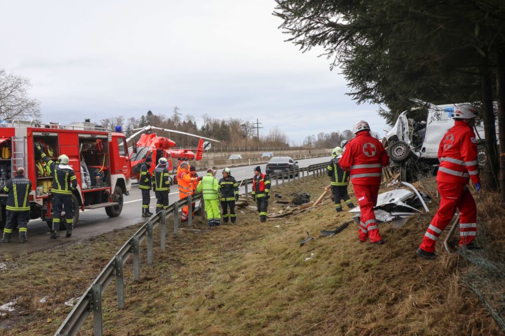 Der 38-jährige Mann aus der Schweiz war gegen 8:10 Uhr auf der A1 Westautobahn in Fahrtrichtung Wien unterwegs. Im Gemeindegebiet von Laakirchen kam der Lenker laut Polizei rechts von der Fahrbahn ab, schlitterte über einen Grünstreifen und prallte frontal gegen einen Baum. In weiterer Folge stieß das Fahrzeug gegen die Lärmschutzwand. Durch die Wucht des Aufpralls wurde der Lenker in seinem Kastenwagen eingeklemmt.