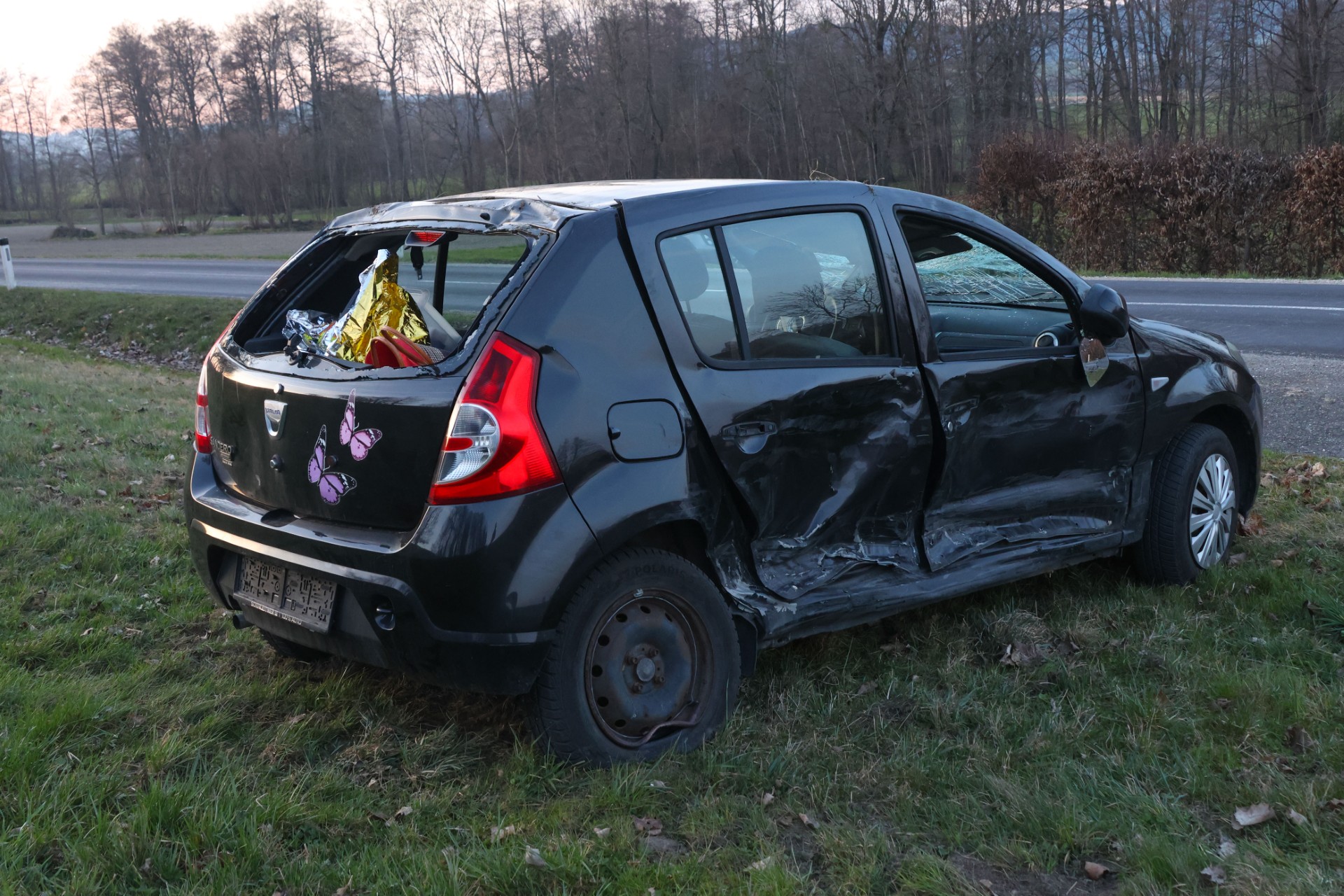 Auto bei schwerem Verkehrsunfall in Ottnang am Hausruck überschlagen