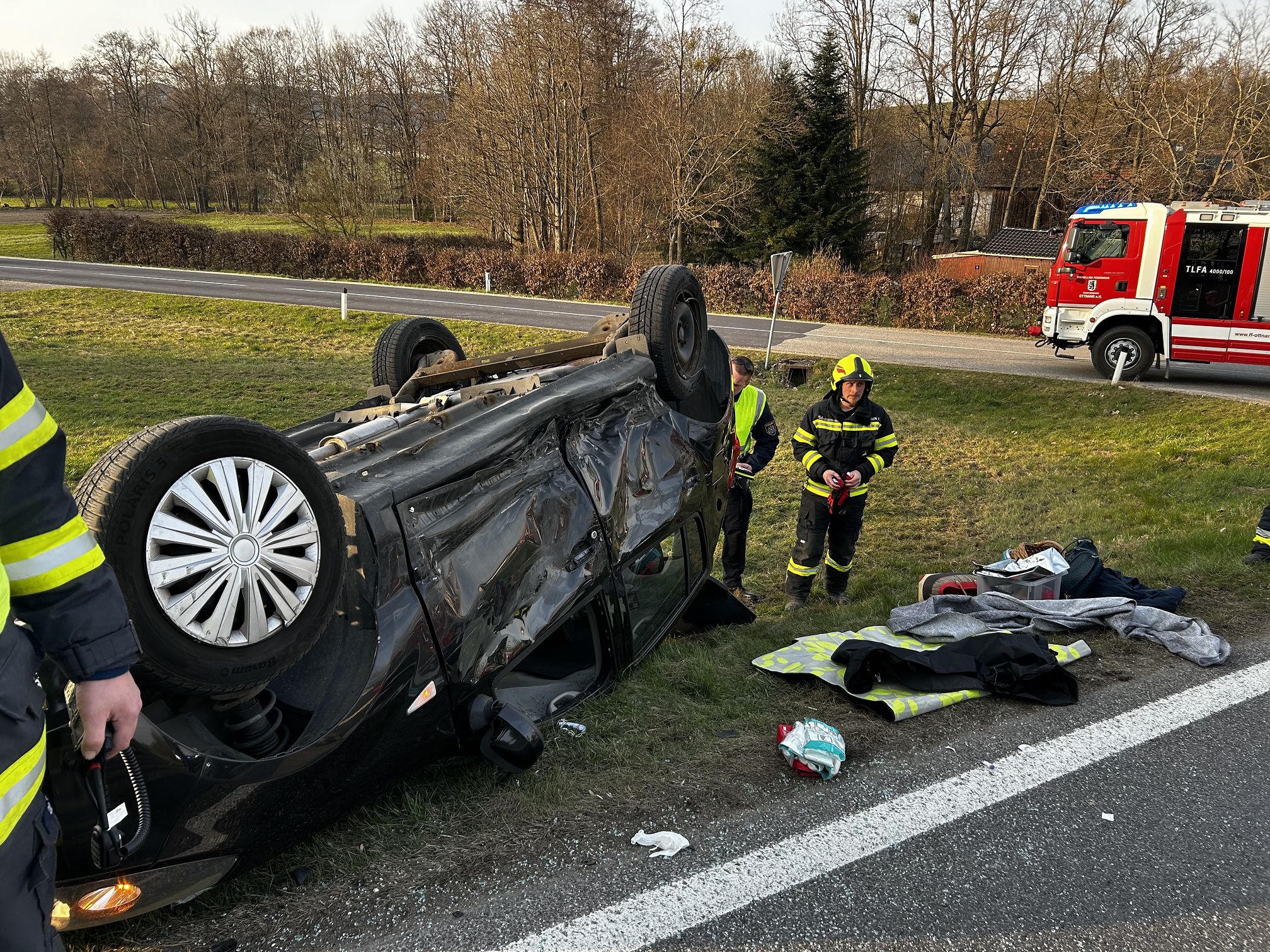 „Entgegen der Erstmeldung stellte sich heraus, dass sich keine Person mehr im Fahrzeug befand. Unsere Aufgaben bestanden in der Absicherung der Unfallstelle sowie der Einrichtung einer Verkehrsregelung bzw. Umleitung. Zusätzlich wurde der Brandschutz erweitert und der Rettungsdienst bei der Versorgung der verletzten Personen unterstützt.