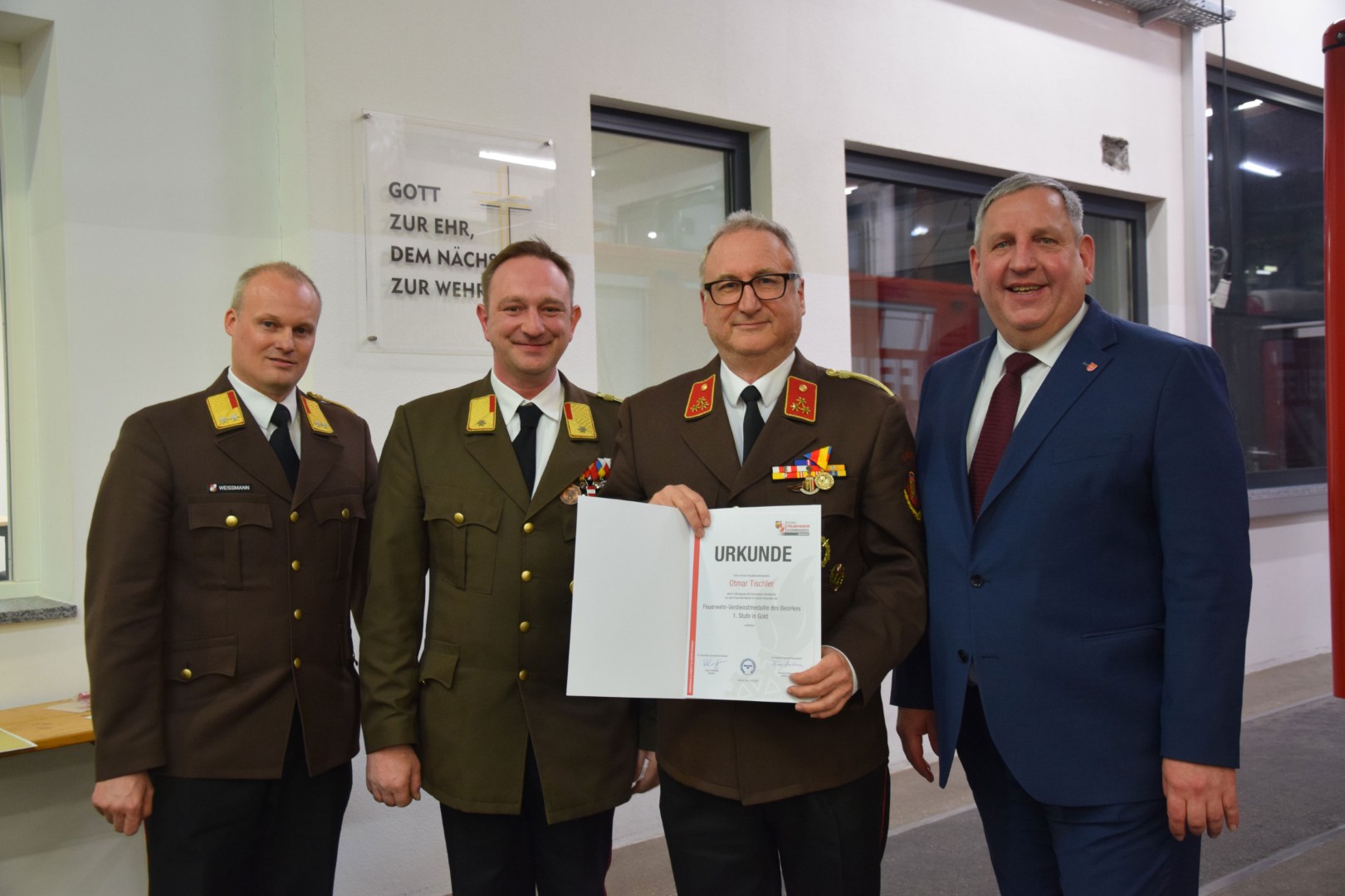 Der langjährige 1. Kommandant-Stellvertreter Otmar Tischler konnte die Verdienstmedaille des Bezirkes Gmunden in der höchsten Stufe Gold in Empfang nehmen.