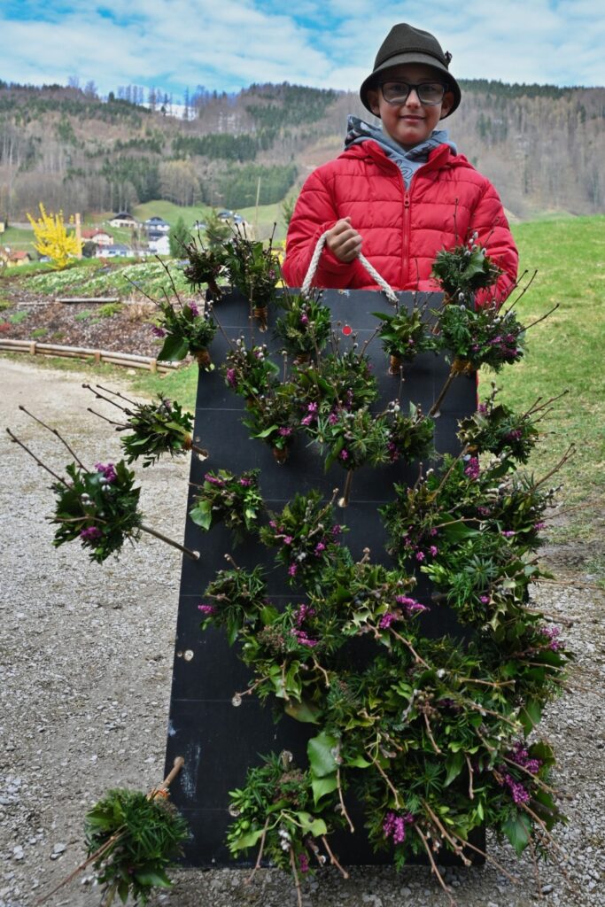 Die Veranstaltung im Eggerhaus war besonders für die kleinen Besucher ein spezielles Erlebnis. Sie bot einen Vorgeschmack auf das kommende Osterfest. Julia meinte auf die Frage, ob sie sich schon auf den Osterhasen freut: „Ich habe aber noch keine Osternesterl gemacht?“ Marcel hatte eine Vielzahl von geweihten Palmbuschen im Angebot, die gegen eine kleine Spende abgegeben wurden.