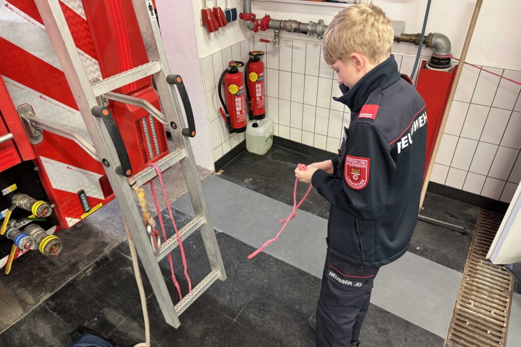 Zahlreiche Aufgaben in den Bereichen Allgemein- und Feuerwehrwissen, Gerätekunde, Dienstgrade, Feuerwehrfunk, richtige Alarmierung, Knotenkunde, Orientierung im Gelände, Verkehrserziehung und Absichern von Einsatzstellen, Gefährliche Stoffe, Atem- und Körperschutz sowie Grundkenntnisse in der Ersten Hilfe waren zu absolvieren.