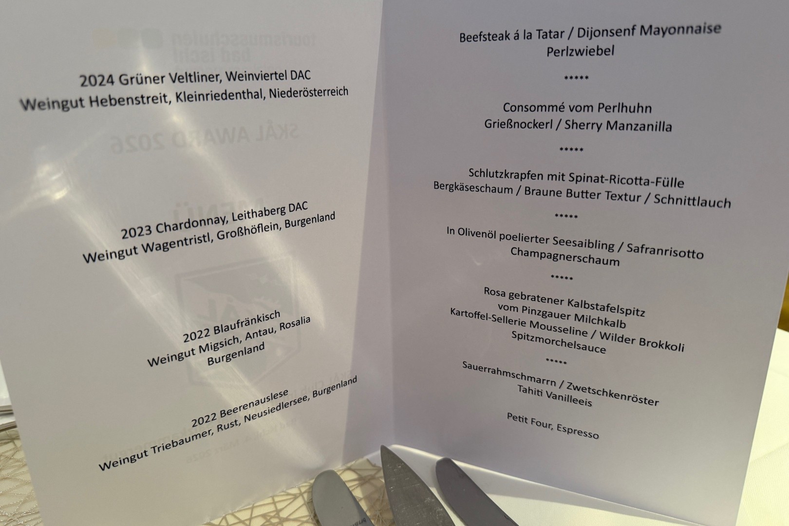 Das köstliche 6-Gänge Menü mit Weinbegleitung wurde von der 2HLa zubereitet und serviert.