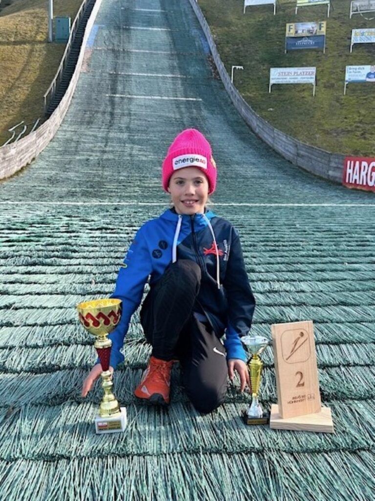 In der Schülerinnen Klasse auf der HS 55 m Schanze konnte die erst 11-jährige ihre fliegerischen Fähigkeiten so richtig zeigen. Mit 49,5 m und 52 m konnte sie sich klar den Sieg holen und sicherte sie sich mit 280 Punkten Vorsprung auf die Zweitplatzierte und allen Landescup Siegen auf den HS45m bis HS 55 Schanzen klar den Gesamttitel in dieser Klasse.