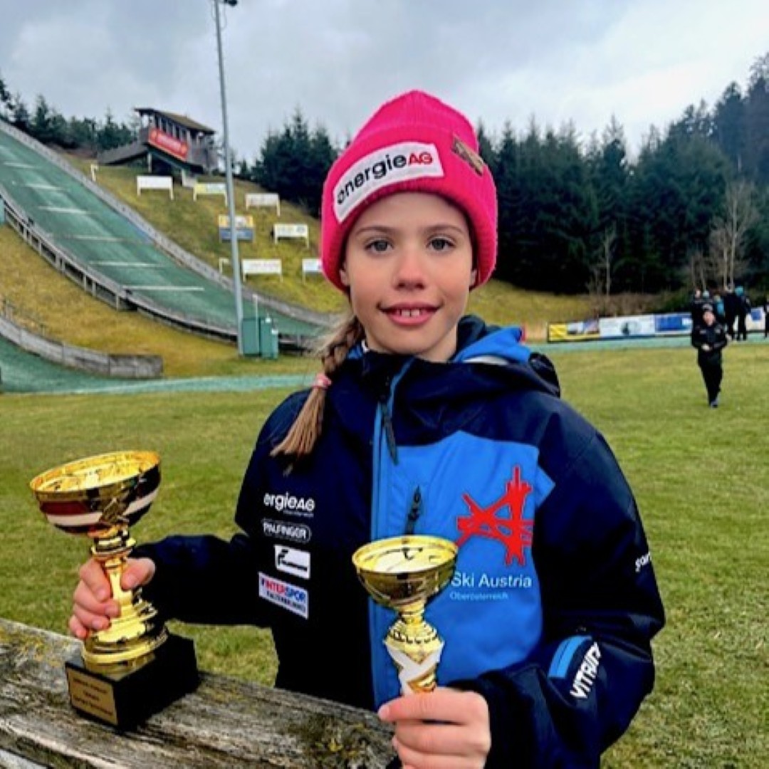 „Besonders stolz bin ich, dass ich als jüngste Teilnehmerin und nur 3 Jahren Sprungerfahrung so tolle Sprünge auf den großen Schanzen zeigen konnte. Irgendwann will ich in die Fußstapfen von Eva Pinkelnig und Andreas Goldberger treten. Es ist nicht immer einfach Schule und Sport unter einen Hut zu bekommen, aber wenn ich mich dann über so tolle Erfolge freuen kann, dann weiß ich, dass sich der Fleiß und mein Ehrgeiz gelohnt haben, ich bin echt stolz darauf!“,  freut sich das junge Sprungtalent Valentina aus Gmunden. Aber nicht nur harte Arbeit zeichnet diesen Leistungssport aus. Vor allem der Spaß kommt im Landesskiverbandskader, den Valentina seit März 2025 angehört, nicht zu kurz. Jedes Wochenende verbringen die Kids des Schülerkaders gemeinsam mit LSV Trainerteam Dustin Hopfgartner und Daniel Roider bei diversen Wettkämpfen und Trainingslagern. „Das schweißt zusammen und es entstehen ganz tolle Freundschaften und fördert den Zusammenhalt im Team“, so die junge Sportlerin begeistert. Jetzt ist erstmal eine Erholungspause angesagt, bevor es ab Mai wieder mit der Vorbereitungszeit losgeht.