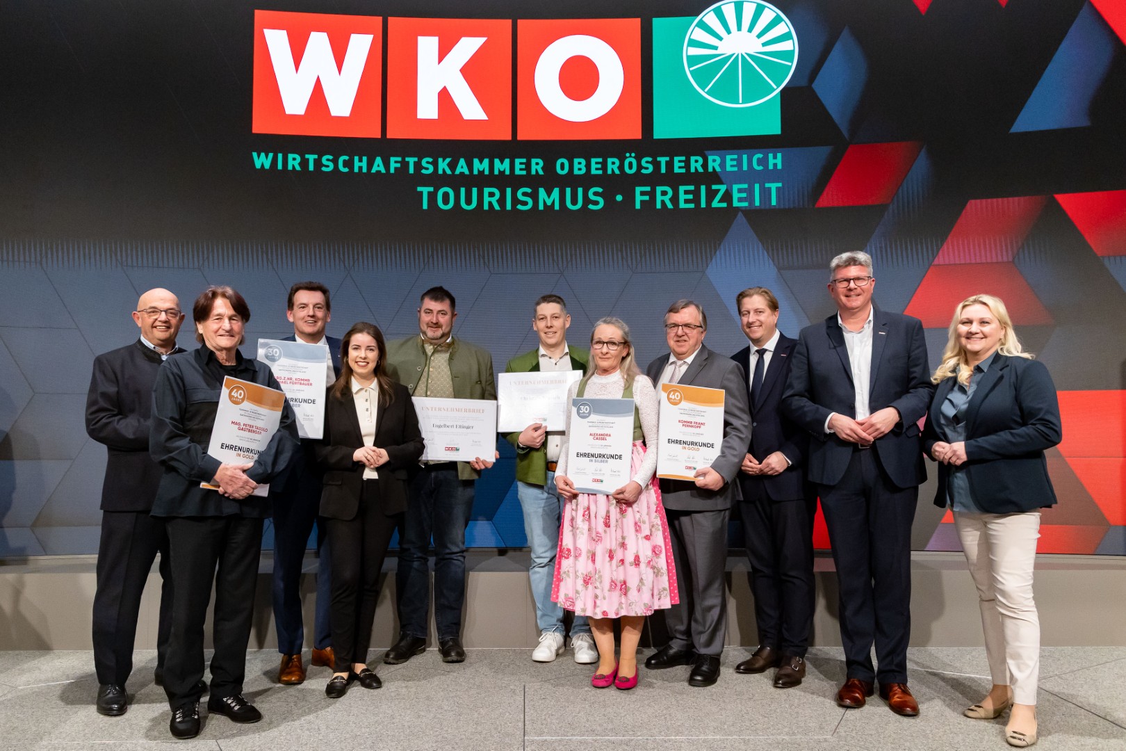 Die Wirtschaftskammer Oberösterreich zeichnete Berufsjubilare des Tourismus aus und übergab Absolventen ihre Unternehmerbriefe.