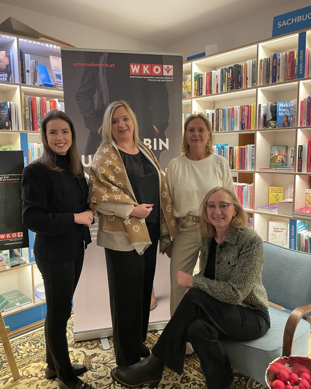 v.l.n.r.: Lisa Sigl (Vizepräsidentin und FidW Landesvorsitzende WKOÖ), Ing.in Claudia Hindinger (Bezirksvorsitzende FidW Gmunden), Mag.a Brigitte Lerperger (Bezirksvorsitzende-Stv. FidW Gmunden), Margit Pöll (Bezirksvorsitzende-Stv. FidW Gmunden) © WKO