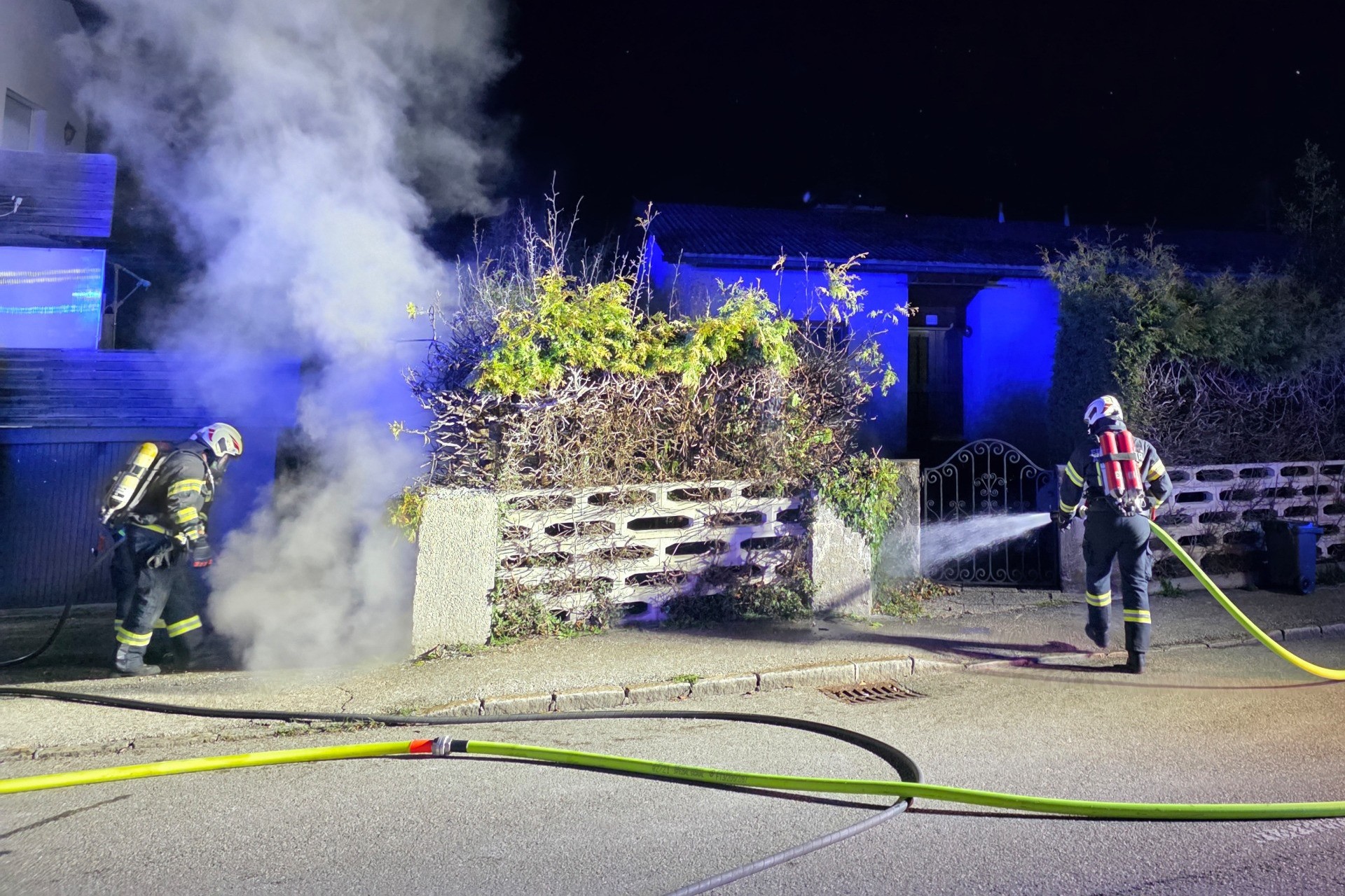 Die Feuerwehr Altmünster wurde um 23:14 Uhr zum Brandeinsatz alarmiert. Bereits aus der Ferne waren der Lichtschein des Feuers und der Rauchgeruch deutlich wahrnehmbar. Vor Ort standen sowohl die betroffenen Mistkübel als auch die Hecke in Flammen. Mithilfe eines Atemschutztrupps mit Schnellangriff, sowie einer zusätzlichen Löschleitung, gelang es, das Feuer innerhalb kürzester Zeit unter Kontrolle zu bringen und „Brand aus“ zu geben.