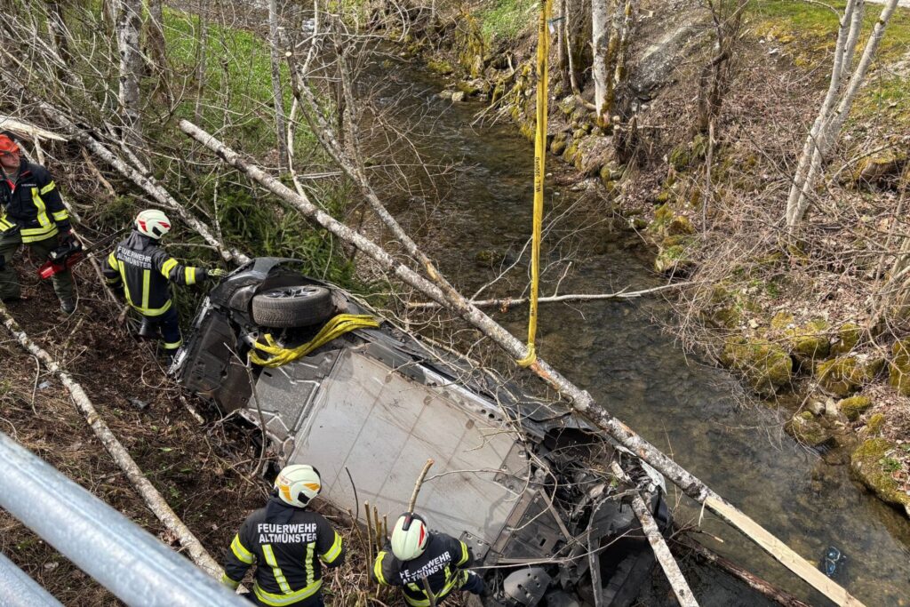 Nach dem Entfernen von kleineren und größeren Ästen konnte das verunfallte Elektrofahrzeug aus dem Bachbett gehoben werden. Anschließend wurde es einem Abschleppdienst übergeben. Für die Dauer der Bergungsarbeiten musste die Großalm-Landesstraße teilweise für den Verkehr gesperrt werden, berichtet die Feuerwehr Altmünster.
