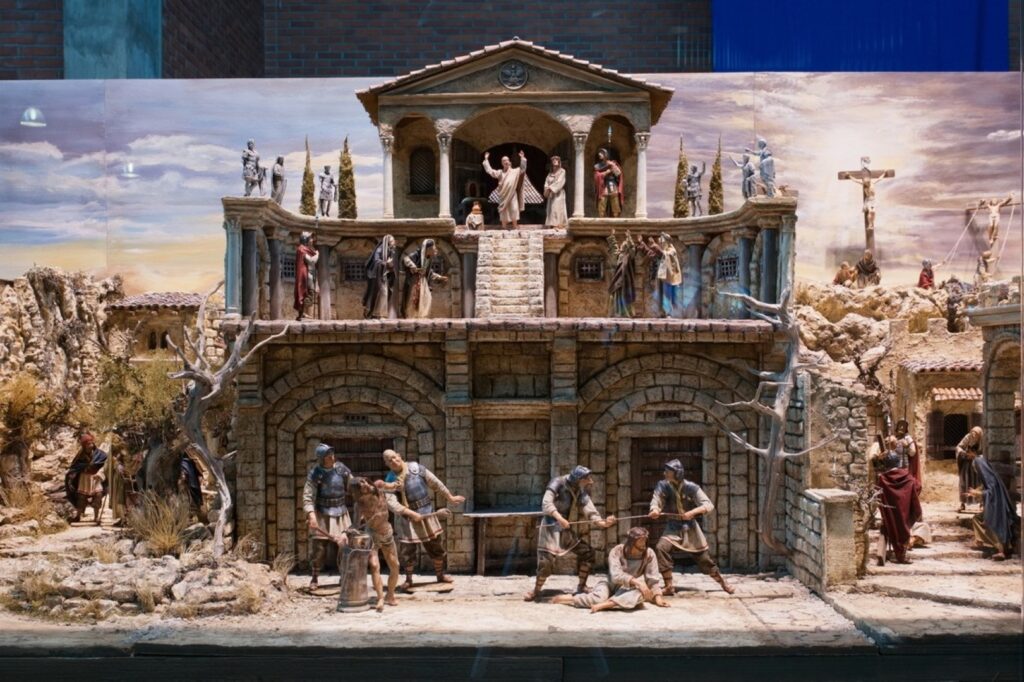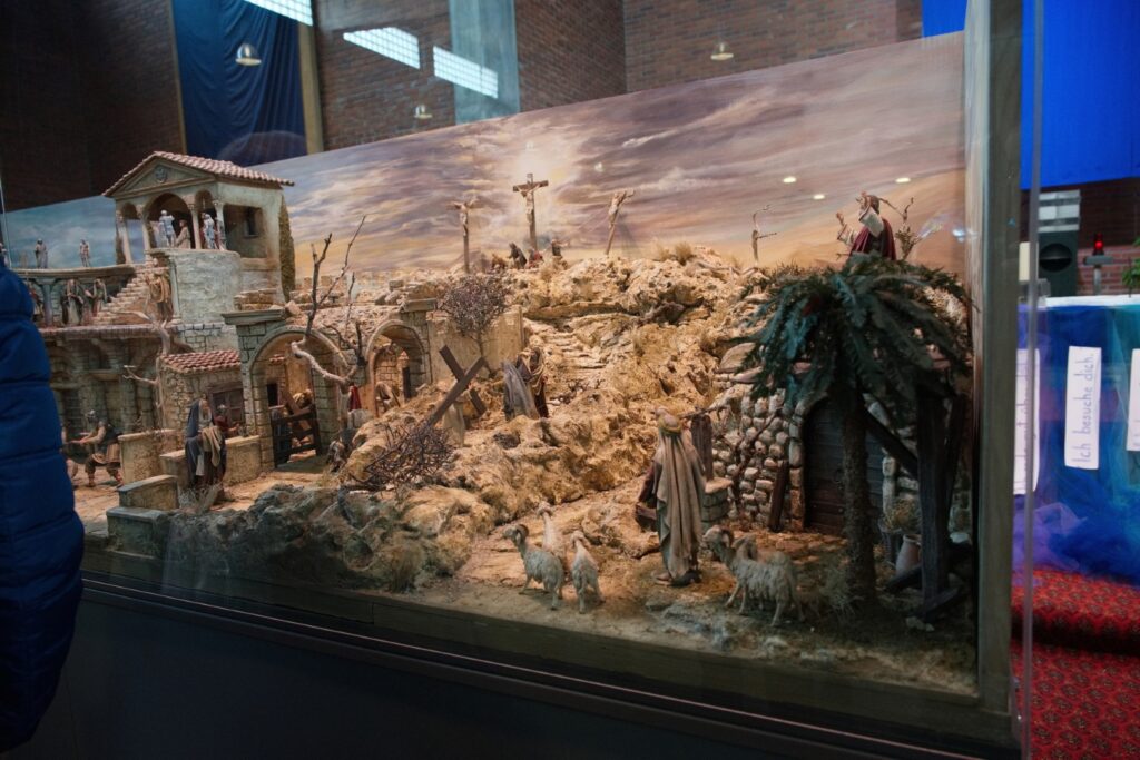 • Besonders groß: Mit beeindruckenden 4,50 Metern Länge und 1,5 Metern Höhe zieht die Osterkrippe die Blicke der Besucherinnen und Besucher auf sich.