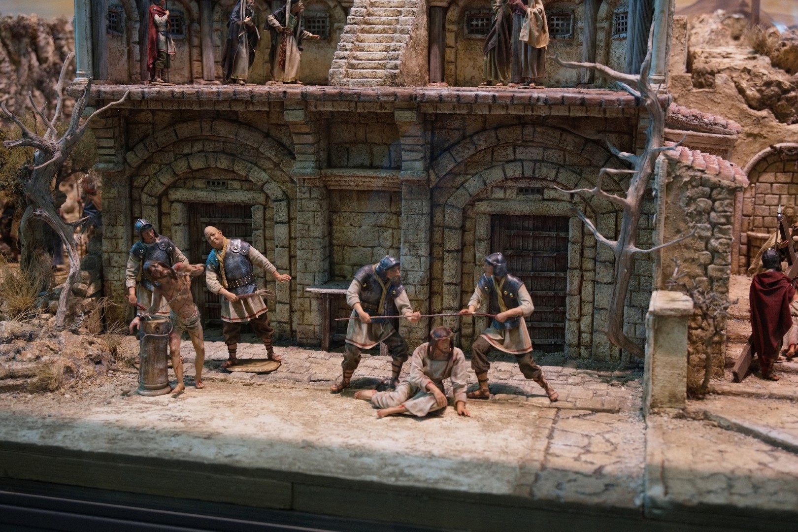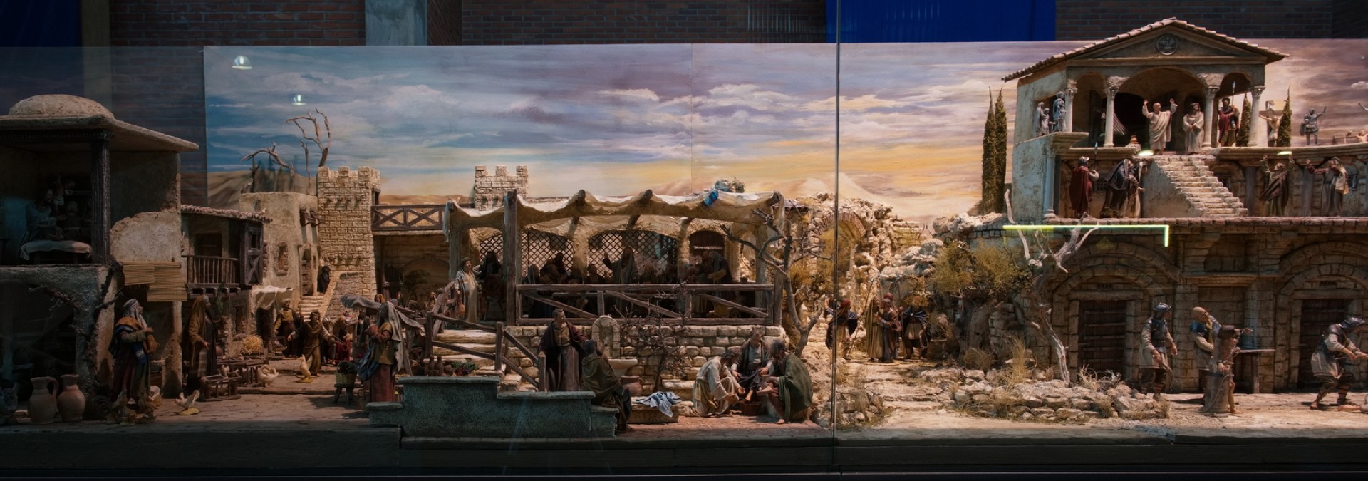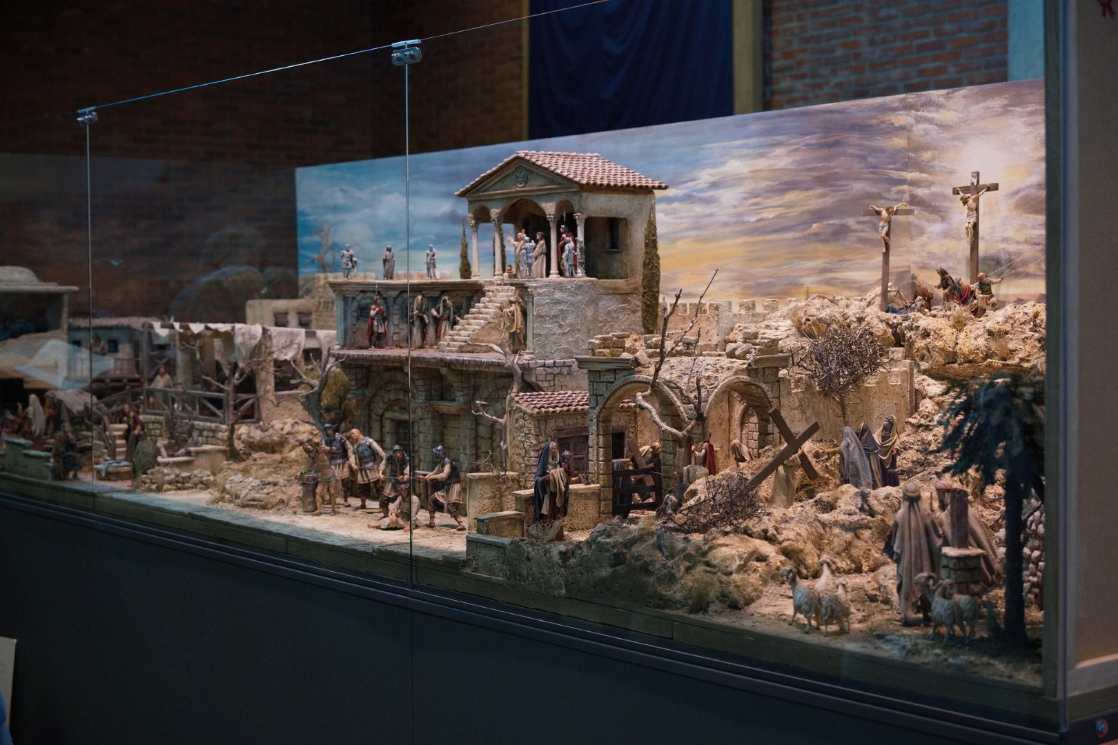 • Besonders groß: Mit beeindruckenden 4,50 Metern Länge und 1,5 Metern Höhe zieht die Osterkrippe die Blicke der Besucherinnen und Besucher auf sich.