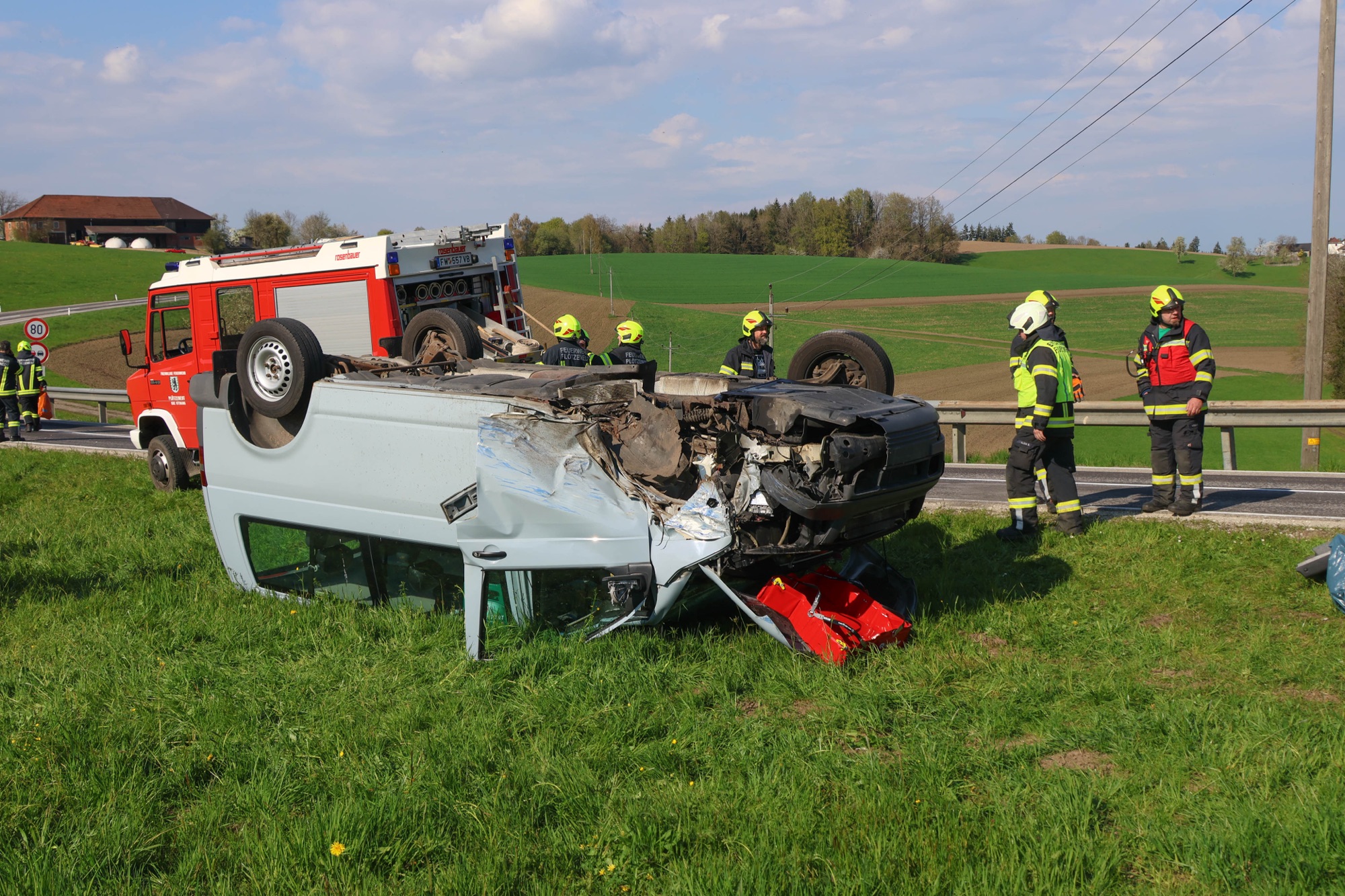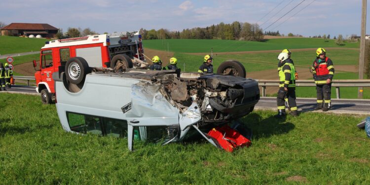 Kleinbus überschlagen: Drei Verletzte bei schwerem Unfall in Ungenach