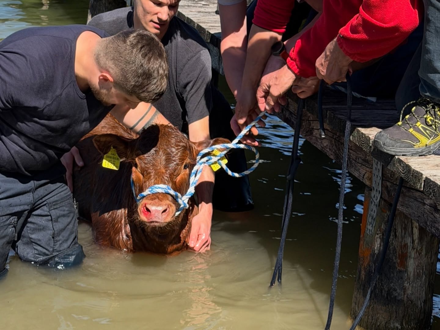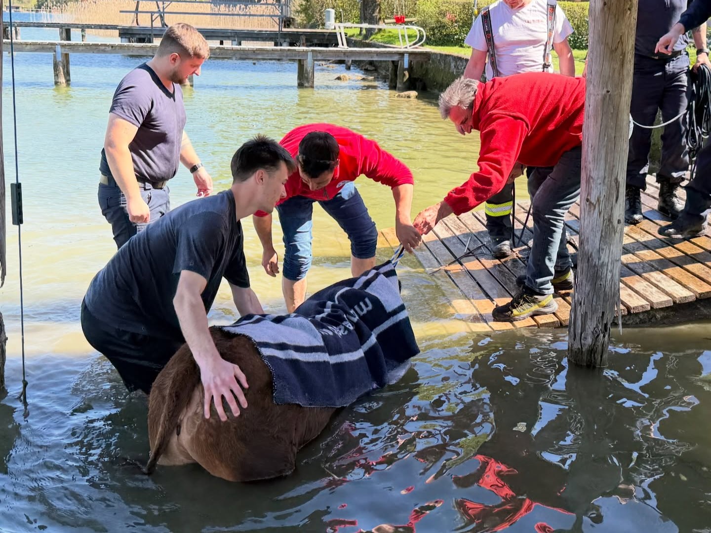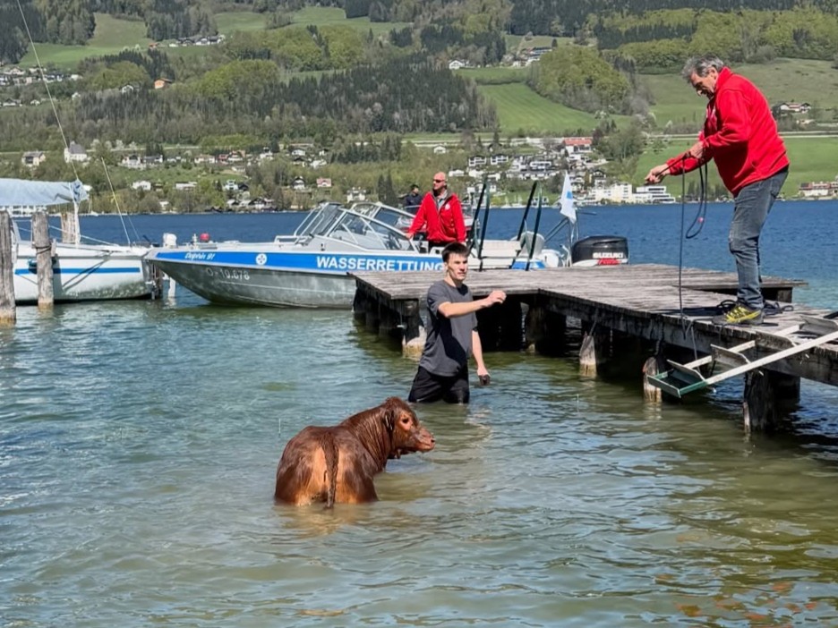 Mithilfe eines Polizeibootes sowie der Unterstützung der Feuerwehr gelang es, die bereits erschöpfte Kuh in Richtung Ufer zu treiben. Gemeinsam mit der Wasserrettung wurde das Tier schließlich aus dem See geborgen. Nach der erfolgreichen Rettung konnte die Kuh wieder ihrem Besitzer übergeben werden, berichtet die Polizei.