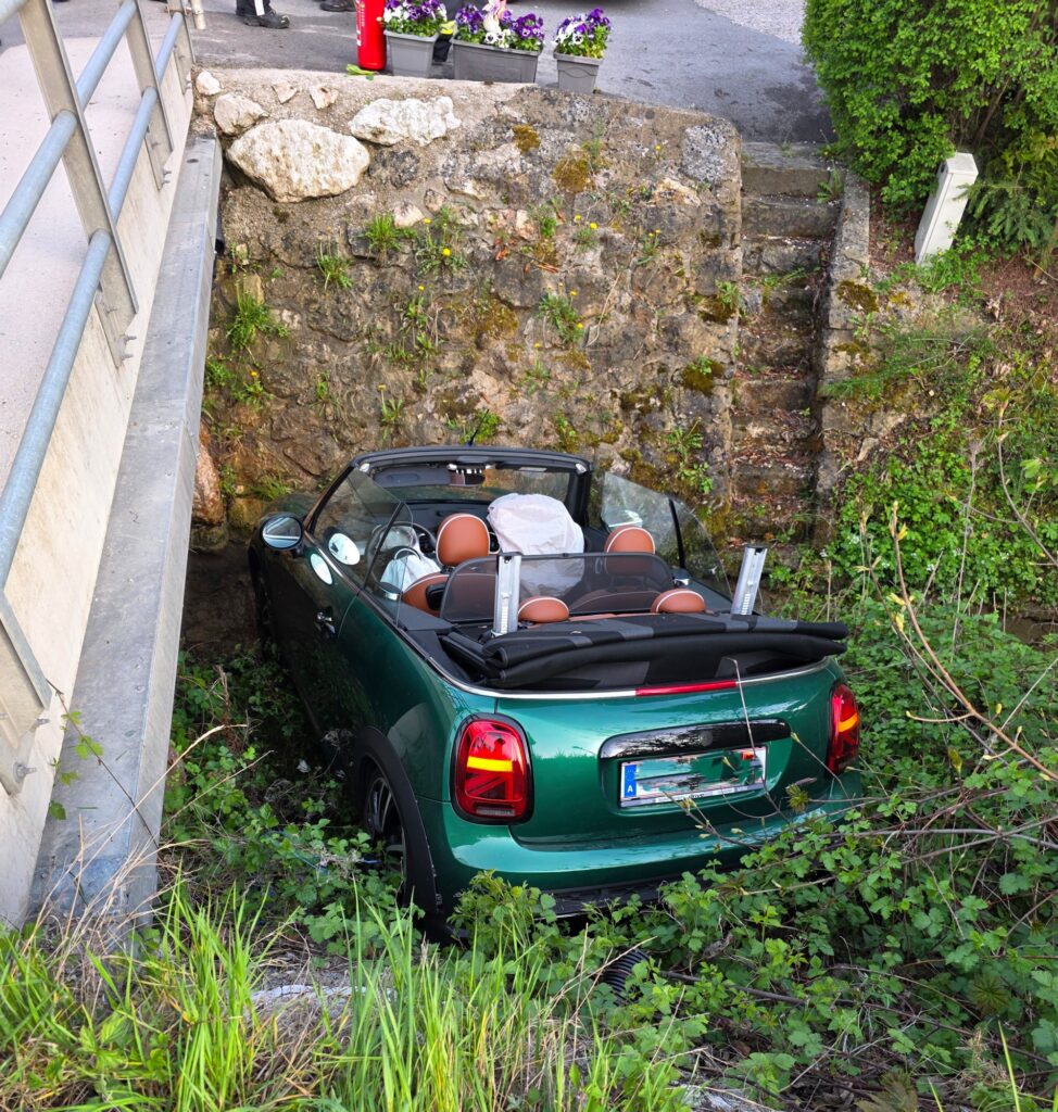 Am frühen Abend des 27. April kam ein Cabrio auf der B145 in Fahrtrichtung Traunkirchen auf Höhe der sogenannten „Zigeunerlinde“ aus ungeklärter Ursache von der Fahrbahn ab und landete im angrenzenden Bachbett.