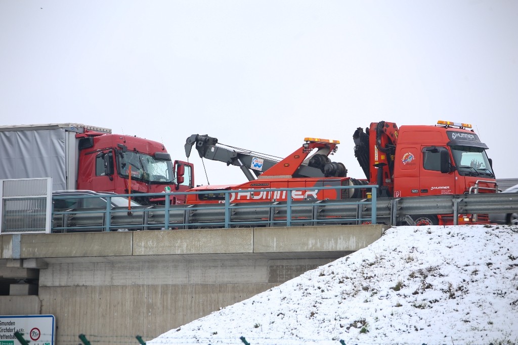 Der Unfall ereignete sich auf der Westautobahn, kurz nach der Auffahrt Vorchdorf, in Fahrtrichtung Salzburg. Laut ersten Informationen waren mehrere LKW in den Crash verwickelt. Zwei Schwerfahrzeuge wurden teilweise schwer beschädigt. Ein Spezialbergeunternehmen musste zur Bergung eines LKWs angefordert werden. Unmittelbar hinter der Unfallstelle ereignete sich ein weiterer Unfall zwischen zwei PKW. Verletzt wurde offenbar niemand. Die Westautobahn war zwischen Eberstalzell und Vorchdorf rund eineinhalb Stunden erschwert passierbar.