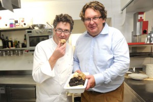 „Koch des Jahrzehnts“ Jörg Wörther sorgte im Anschluss an die Weinverkostung für kulinarischen Hochgenuss. Er kochte für die Gäste ein 6-gängiges Menü unter dem Motto „Alles Maibock, Morchel & Spargel“. Es gab Poelierten Waller mit Petersilien-Nage und tournierten La Ratte Erdäpfeln, gefolgt von Timbal von der Attersee-Rheinanke mit Beurre blanc, jungem Spinat und Dillpesto.