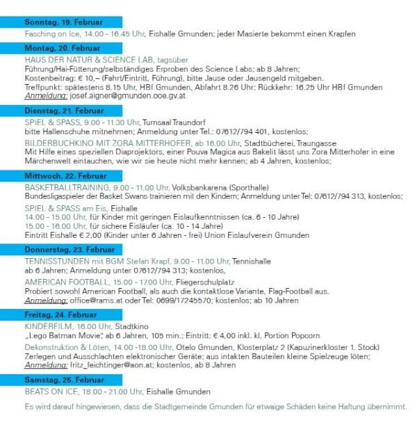 Eisdisco; die Stadtgemeinde Gmunden übernimmt für etwaige Schäden keine Haftung.