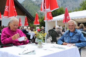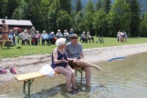 Auch die Wasserrettung Ebensee war mit von der Partie und ermöglichte einen sicheren Zugang zum See, welchen auch einige Bewohner nutzten. Kaffee und Kuchen wurde dann direkt am See genossen. Für viele Bewohner und Bewohnerinnen war der Besuch bei der Jausenstation ein emotionaler Höhepunkt, da sie schon Jahrzehnte nicht mehr dort gewesen waren.