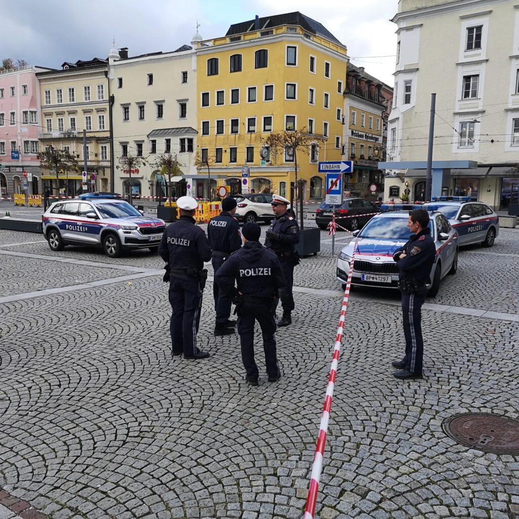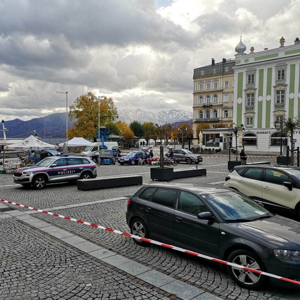 Um keine Passanten zu gefährden legen die Beamten die intakte Handgranate bis zum Eintreffen des Entminungsdienstes in einem Dienstwagen ab. Mittlerweile gab es Entwarnung und der Rathausplatz ist wieder freigegeben.