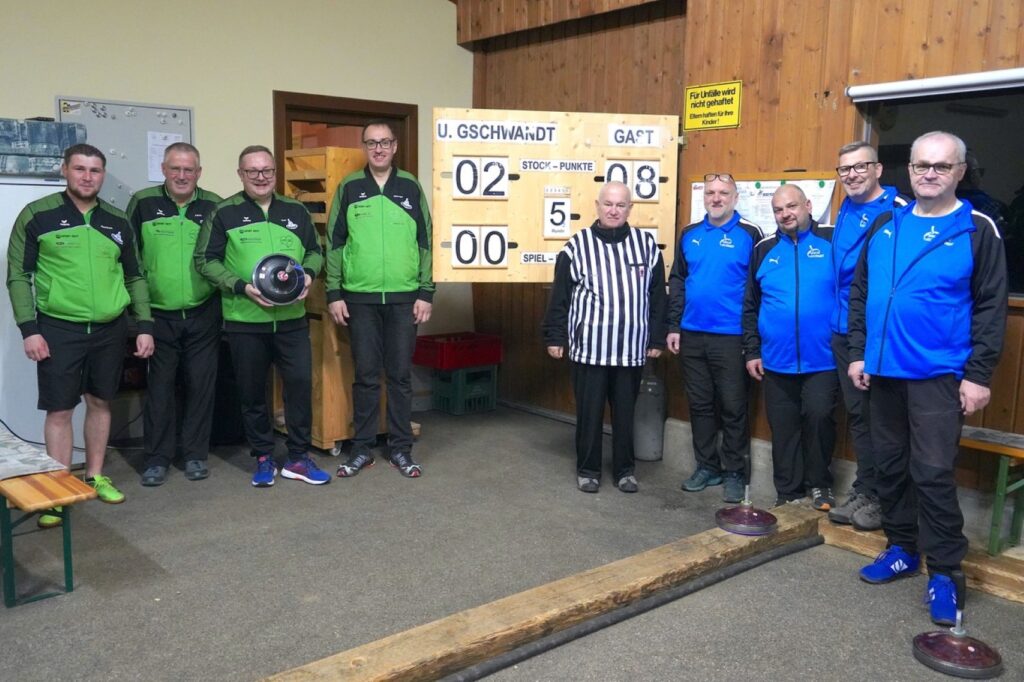 Freitag 4.4.2025 kam es in der UNION Stocksporthalle Gschwandt zum OÖ Landesligaspiel zwischen der Mannschaft der SU Gschwandt gegen SU Neustift. Die Vorbereitung war gut, die Motivation ebenfalls, mit den Schützen als Moar Walter Prüwasser, 1. Stockschütze Thomas Gahleitner, 2. Stockschütze Walter Gumpl und 3. Stockschütze und „Kopf der Bande“ Christian „Meki“ Gumpl gut aufgestellt, der Gegner Neustift allerdings überdimensional und als Favorit eingeschätzt. Schon von Beginn an sah man die Überlegenheit der Gäste mit den Schützen als Moar Eich Scharrer, 1. Stockschütze Martin Scharrer (er war Nationalspieler und Staatsligaschütze), 2. Stockschütze Markus Oppinger und 3. Stockschütze Ewald Ratzenböck. Mit Fehlschüssen bei fast allen Kehren kamen die Gschwandtner rasch in Rückstand, die Gäste machten fast alles richtig und so gingen alle 10 Spielpunkte und mit 10:40 Stockpunkten auch dieses Ergebnis klar an SU Neustift. Schiedsrichter Johann „Pauli“ Raffelsberger hatte bei der Leitung der Partie keinerlei Probleme.