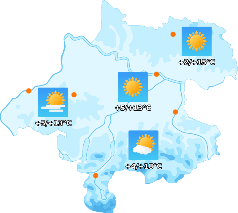 Hoher Luftdruck sorgt für ruhiges Herbstwetter. Am Freitag halten sich anfangs noch Frühnebelfelder und ein paar Restwolken. Tagsüber wird es strahlend sonnig und häufig wolkenlos. Nach Frühwerten zwischen +2 und +6 Grad steigen die Temperaturen auf +12 bis +15 Grad, in den Föhnlagen bis +18 Grad.