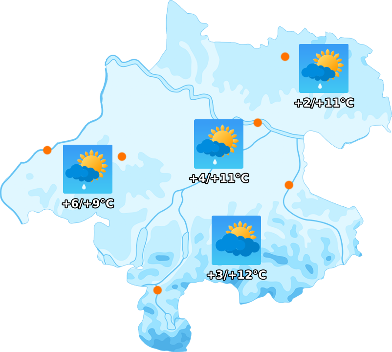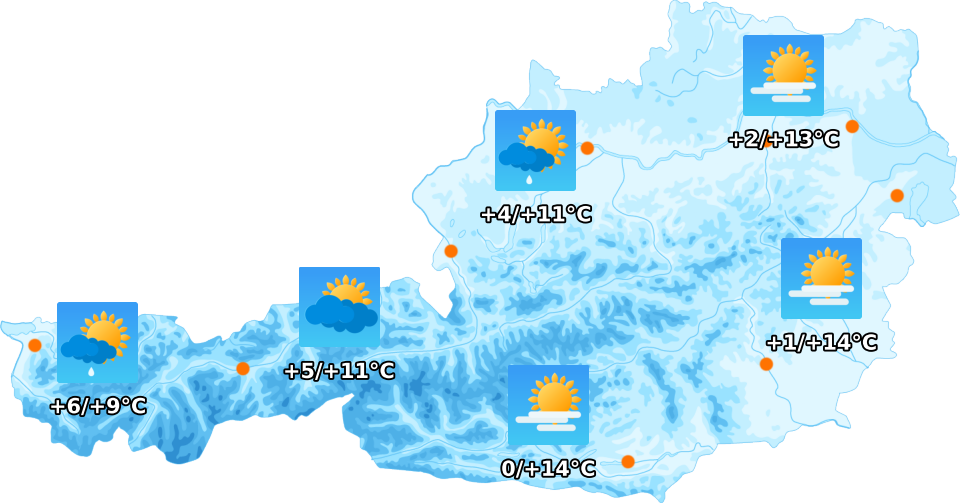 Eine schwache Störung bringt in der Nacht und am Sonntagvormittag etwas Regen nach Oberösterreich, bis mittags klingen die Niederschläge ganz ab und am Nachmittag gibt es bereits ein paar Auflockerungen. Die Temperaturen erreichen +9 bis +12 Grad.
