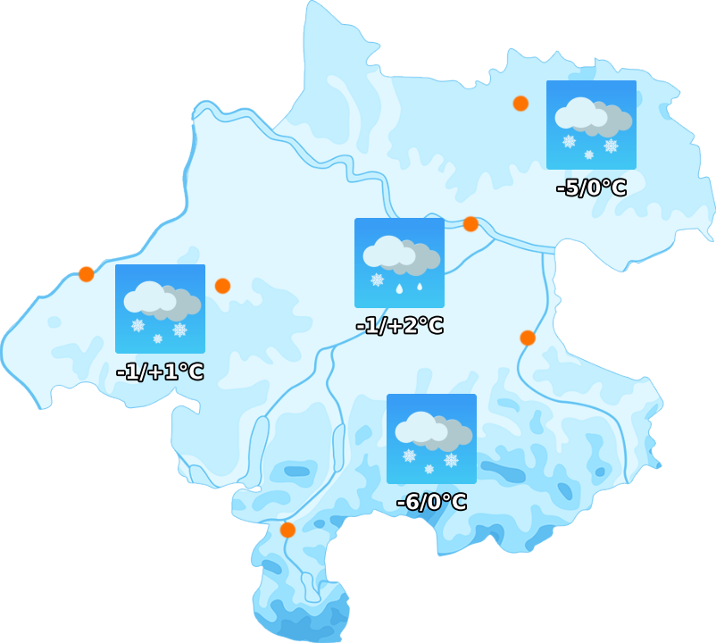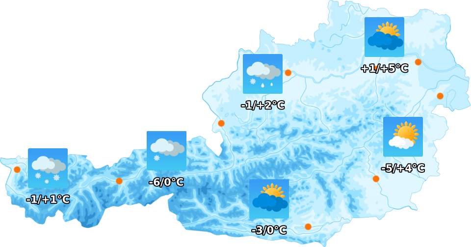 Am Samstag setzt in ganz Oberösterreich Schneefall ein und vor allem am Vormittag gibt es fast überall etwas Neuschnee, im Mühlviertel bis zu 5 cm. Dazu kommt lebhafter bis stürmischer Westwind auf. Am Nachmittag verlagert sich der Schwerpunkt der Niederschläge ins Bergland. Dazu bleibt es windig mit weiteren Schnee- und Schneeregenschauern. Die Tageshöchstwerte bewegen sich zwischen 0 und +2 Grad.